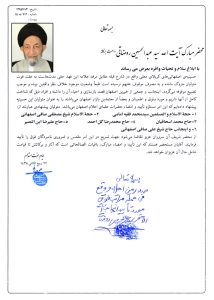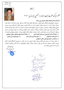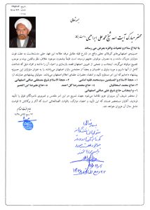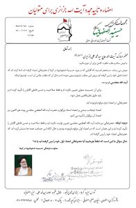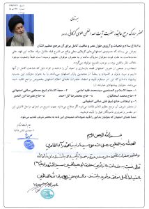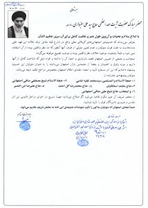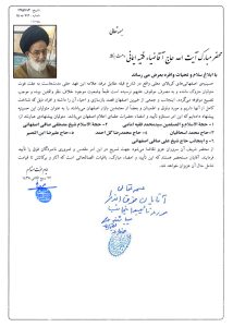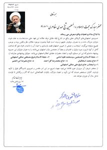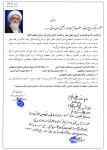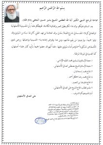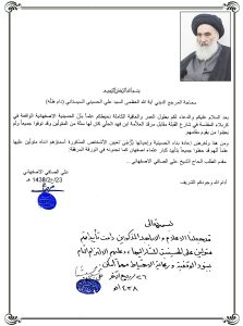 - حکم تولیت آیت الله حاج شیخ علی صافی و همراهان از ناحیۀ مقدس مرجع اعلای شیعه حضرت آیت الله العظمی سیستانی