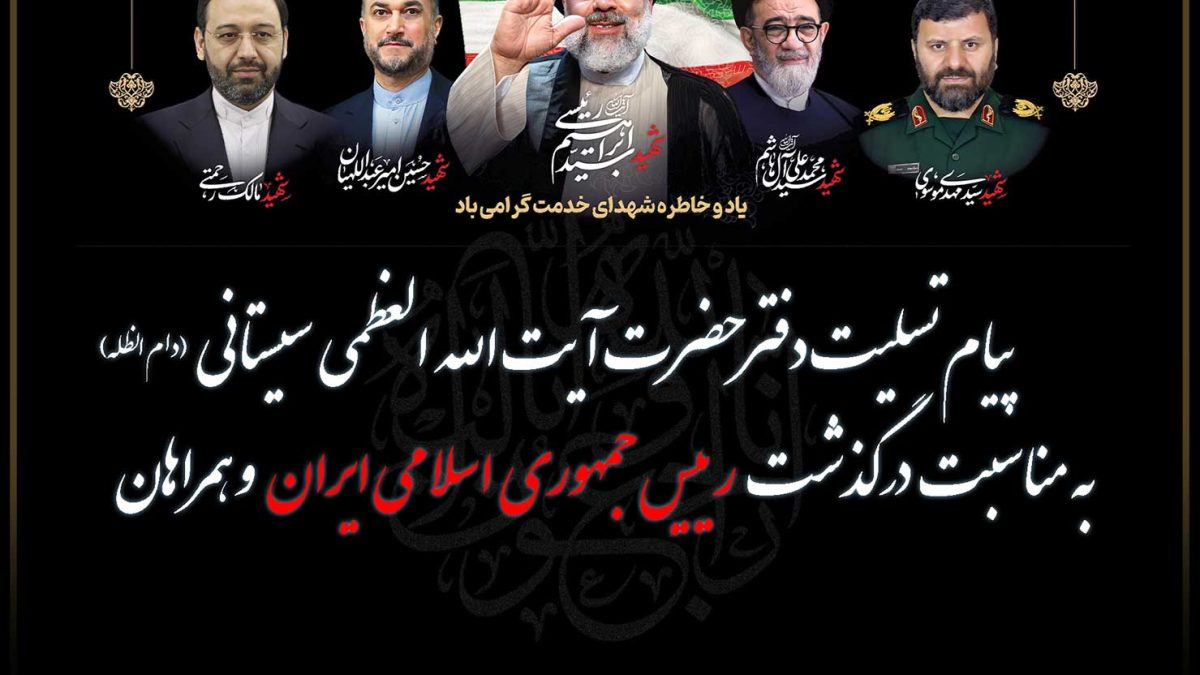 بیانه دفتر حضرت آیت الله العظمی سیستانی(دام الظله) به مناسبت درگذشت رئیس جمهوری اسلامی ایران و همراهان